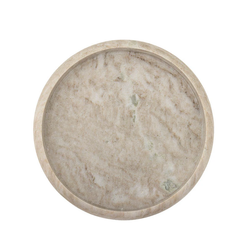 De Ivette Platter Nature - Bloomingville is een elegante toevoeging aan je interieur van het gerenommeerde merk Bloomingville. Dit prachtige dienblad, dat tevens dienst doet als woonaccessoire, is gemaakt van marmer in een delicate beige kleur. Met een hoogte van 5,0 cm en een diameter van 38,0 cm is het dienblad zowel praktisch als stijlvol. Het is met de hand gemaakt uit één stuk marmer, waardoor elk dienblad uniek is met zijn natuurlijke variaties. De gladde, afgeronde randen zorgen voor een tijdloze en verfijnde look die perfect past in elk interieur.