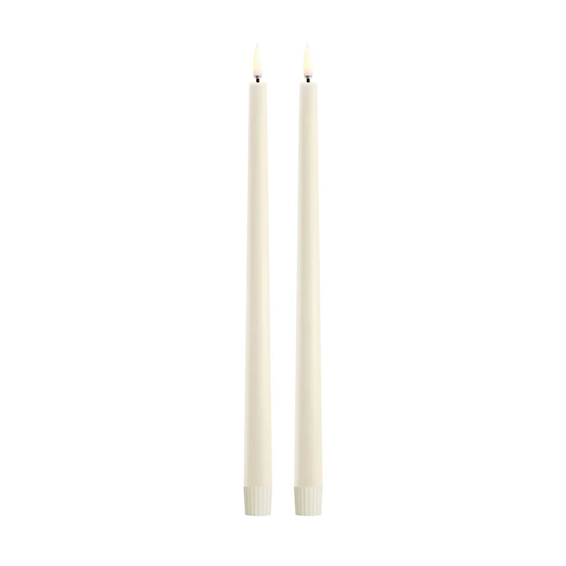 De set van 2 LED-kaarsen TAPER in de kleur ivoor siert elke tafel met sfeervol kaarslicht en creëert een gezellige sfeer.